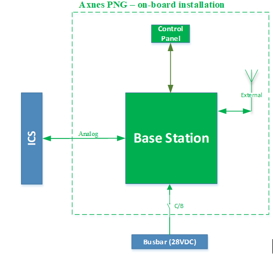 The modification is limited to the installation of the newly developed Axnes PNG system as a wireless extension to the existing Aircraft Intercom System. The aircraft installation part of the Axnes PNG is comprised of a Base Station (BS), Control Panel (CP) and an external antenna. The interface with aircraft systems is limited to: