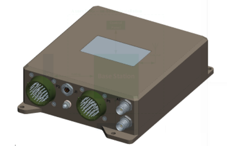 The CP is the PNG’s User Interface. It features a monochrome display which provides status information (e.g. quality of the radio line, configuration parameters, etc.), as well as a menu structure for access to user settings and adjustments. The interaction with the system is achieved through the rotary knobs and discrete switches on the panel. The CP will be installed on the FWD side of the cargo bulkhead on a purpose made attachment bracket, next to one existing passenger seat. The CP is only interconnected with the BS and requires no external power supply.