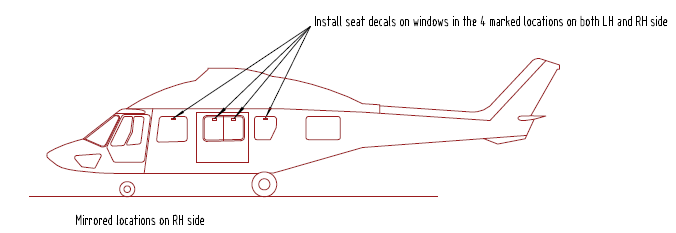 This modification installs decals where it has been deemed suitable for wider passengers to be seated and which windows these passengers may use. The decals layout has also been reviewed as appropriate for this to enable the operator to easily locate these passengers during loading of aircraft. There are also decals installed on the dedicated seats.